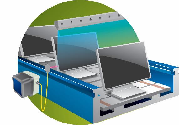 The timer was set to the “interval” setting when detecting the flat panel displays. The sensor was mounted 25mm (1”) prior to the Super Ion Air Knife blowoff station. When it detected the flat panel, it turned the air on immediately and started the 10 second timing sequence for closing the valve (shutting the air off). In the event the conveyor stopped, the air would no longer cycle on again until the next flat panel was detected.