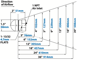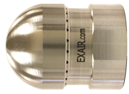 EXAIR’s Back Blow Air Nozzles have been designed to effectively blow debris and liquids from pipe or hose inside diameters, axle housings, bores, holes, internal threads and other internal part features found in hydraulic cylinders, gear boxes, differential housings and more. An array of holes provides a forceful 360-degree airflow to clear out coolant, chips and light oils from machining processes. These nozzles prevent blowing chips further into a part, tube or pipe and eliminate any safety hazard created by blowing debris out the far end of a pipe or tube. Since airflow is directed back toward the operator, personal protective equipment is recommended.